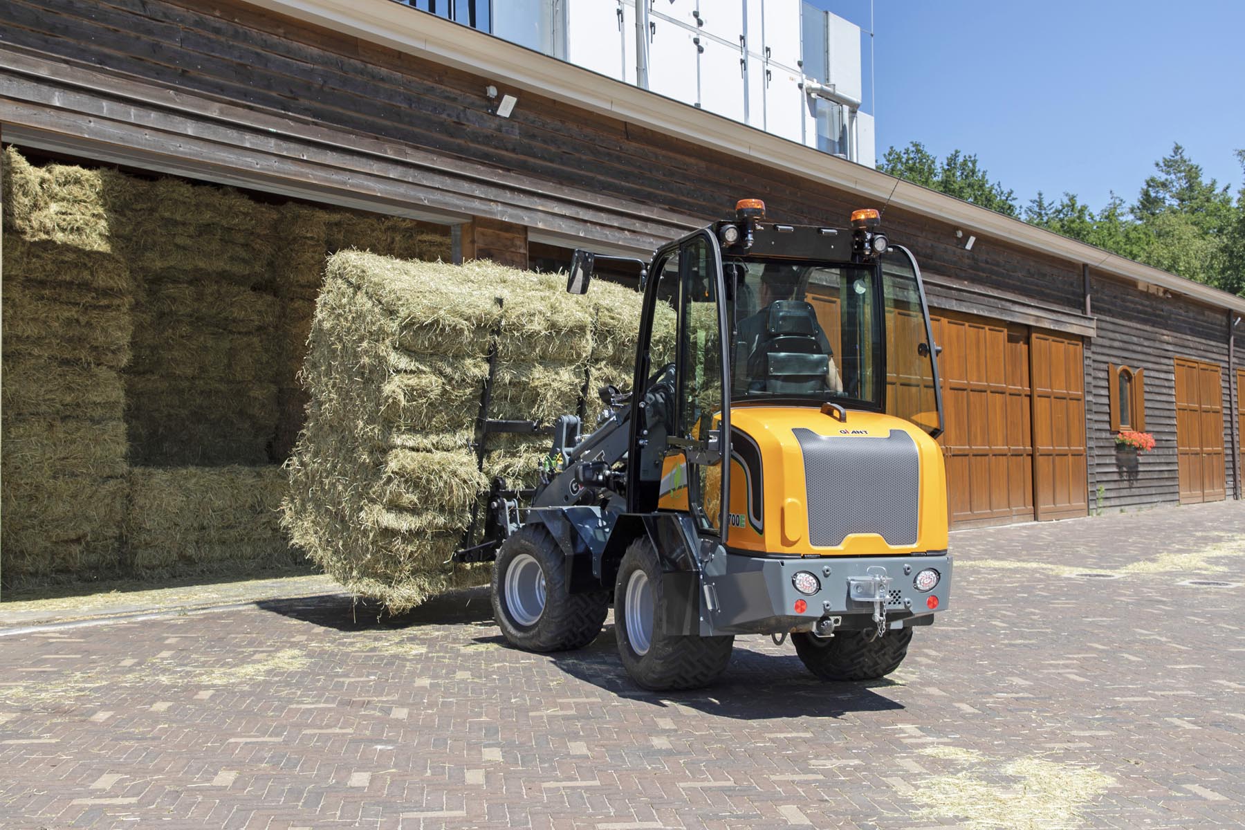 De G2700E wielladers zijn een formaat groter en krachtiger dan de huidige G2200E en kunnen complete pallets met stenen vervoeren. Specifiek voor het uitvoeren van werkzaamheden met hydraulische werktuigen die veel olie verlangen is het mogelijk om de G2700E met een oliekoeler uit te rusten.