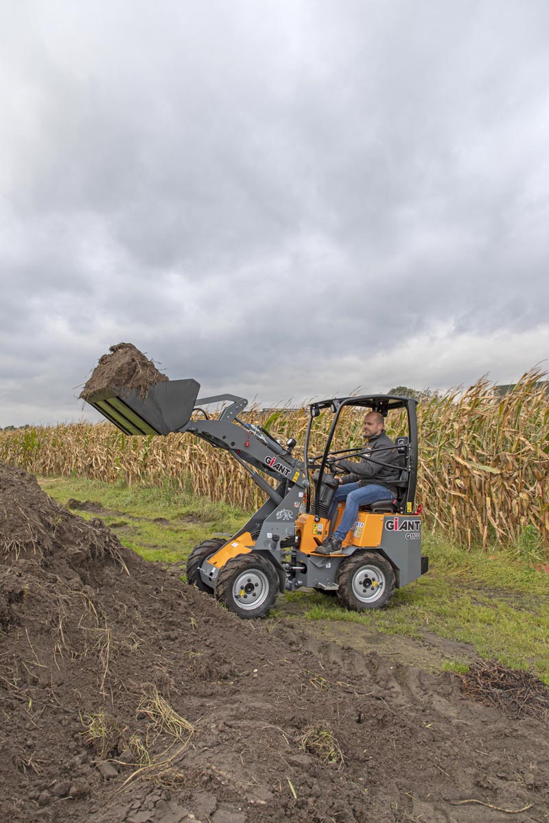 De Giant G1100 is de perfecte kniklader voor werkzaamheden in smalle doorgangen. Het compacte ontwerp en een laag bedrijfsgewicht (1.100kg) maken de machine zeer manoeuvreerbaar. Het lage bedrijfsgewicht maakt het mogelijk om de machine eenvoudig op een aanhanger te vervoeren. Lichte en zware werkzaamheden kunnen eenvoudig uitgevoerd worden door de hoge hefkracht van 1.100kg. Daarnaast wordt er zeer veilig gewerkt dankzij het internationaal gecertificeerde veiligheidsdak.