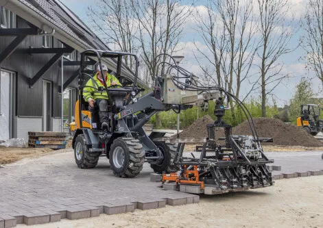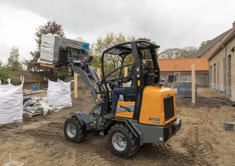 De X-TRA uitvoering van de Giant G1500 wiellader kenmerkt zich door het verlaagde frame. Dit unieke frame zorgt voor een hefvermogen van 1.100kg en is daarmee een zeer geschikte machine voor stratenmakers of hoveniers.