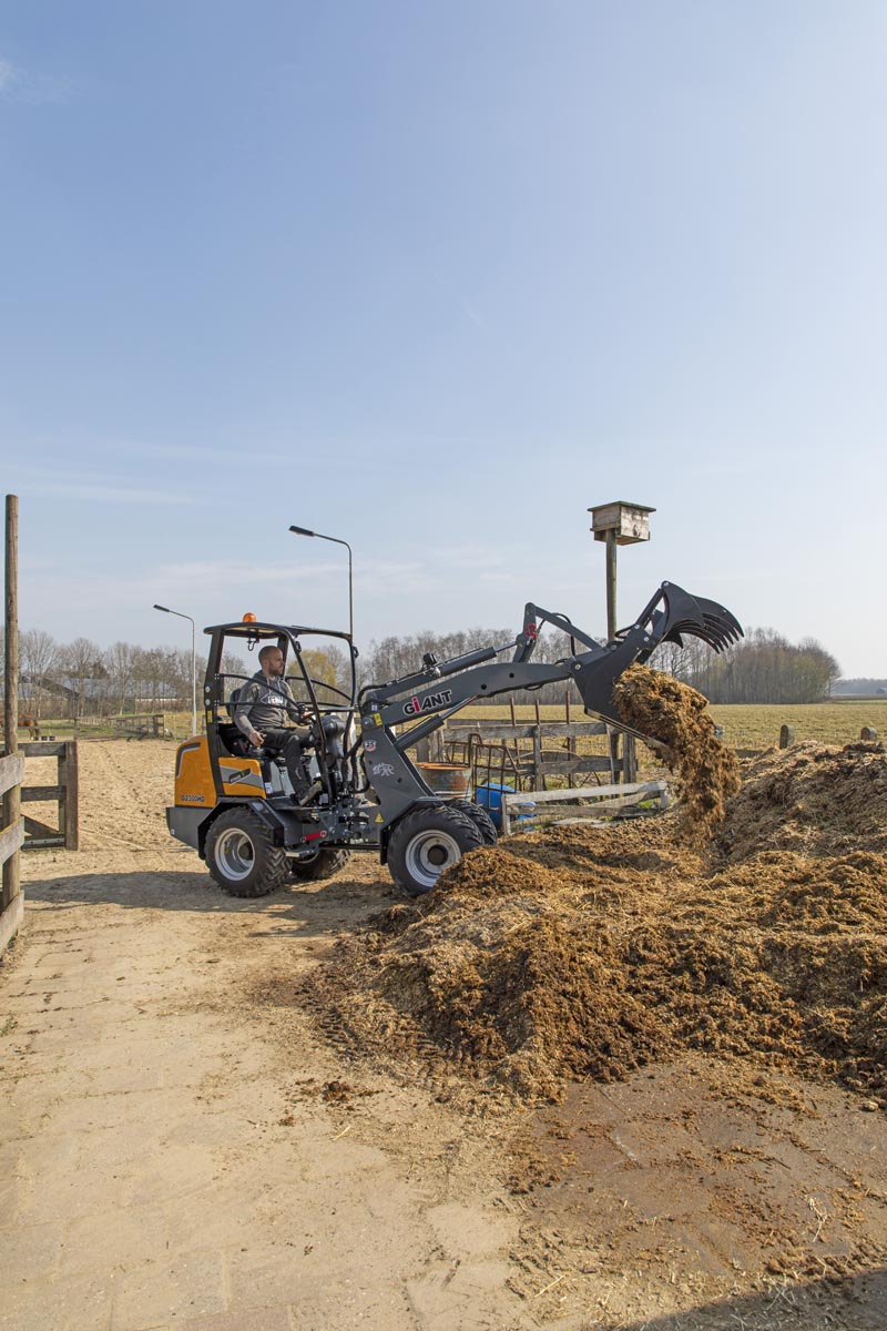 De Giant G2300HD is een krachtige 26 pk kniklader. Uitgerust met Heavy Duty 8 tons assen heeft de kniklader een hefvermogen van 1.650 kg en een hefhoogte van maximaal 2,8 m.