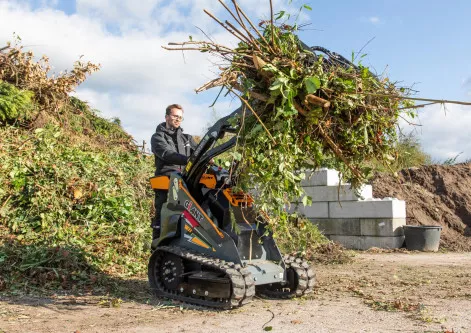 De GS950TE is onze eerste elektrische skid-steer loader op rupsbanden.